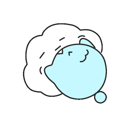 A cute, light blue, cartoon whale-like animal playfully peeks out from under a soft, white cloud or blanket.