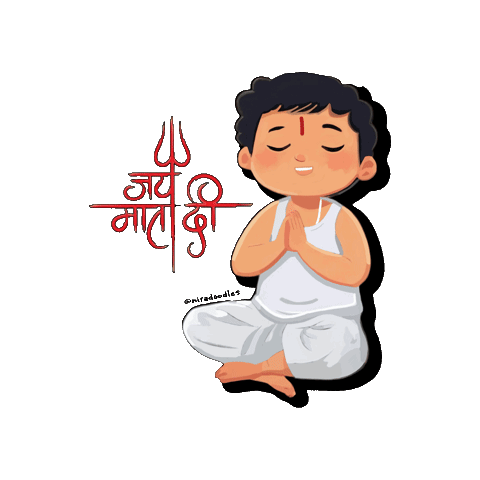 a cartoon drawing of a boy with a trident on his forehead and the words " जय माता दी " below him
