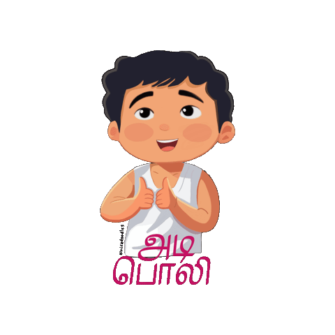 a cartoon drawing of a boy giving a thumbs up and the words " aimo ponni " below him