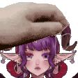 A hand gently pats the head of the anime character Lilith Sinclair, who smiles sweetly.