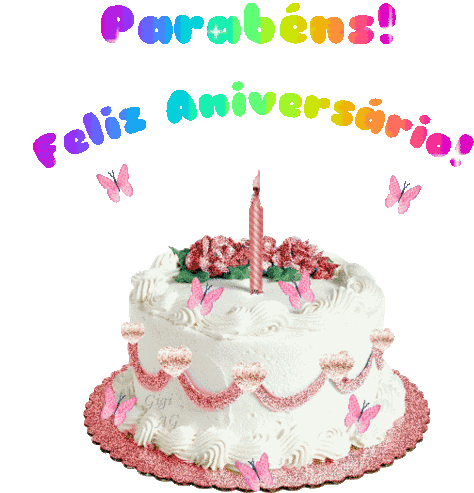 A delightful animated sticker featuring a pink butterfly fluttering around a festive birthday cake with "Happy Anniversary" text.