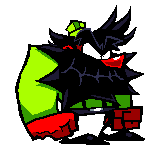 Antonblast's character Anton, a green spiky pixel art figure, is animated yapping or talking rapidly.