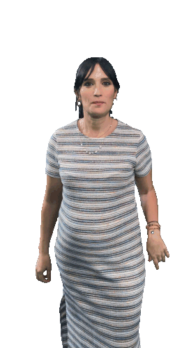 ánxela Loira points directly, then brings her finger to her ear, signaling attention or listening intently.