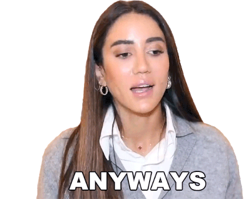 Tamara Kalinic expresses a transition in thought, saying 'Anyways' with a thoughtful expression.