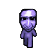 The pixelated purple Ao Oni figure from Pillar Chase Brainrot walks forward with a creepy smile, embodying horror.