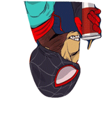 Apes R Us Katun Spider-Man character, depicted upside down, holding a red spray can, ready to create some art.