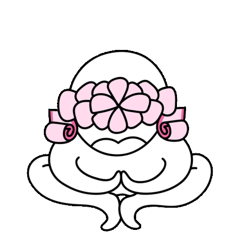 An adorable animated character with a pink bow and folded hands expresses gratitude as 'Thank You' banners unfurl.