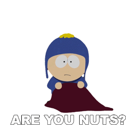 Craig Tucker from South Park, looking shocked and asking 'Are You Nuts?' with wide eyes.