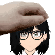 Aria Omniverse Enxima, a pixel art character with glasses and a hat, receives a gentle head pat.