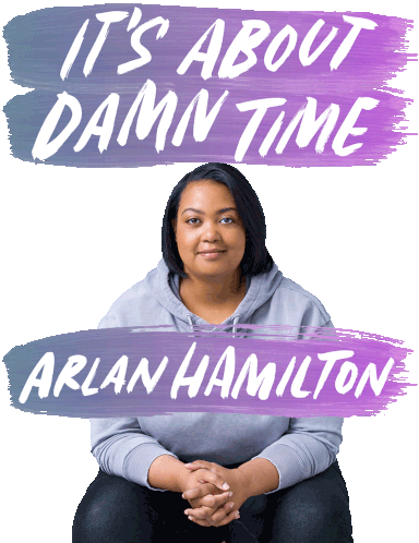 Arlan Hamilton, the inspiring venture capitalist, featured with the empowering message 'It's About Damn Time'.