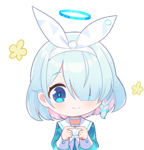 Arona, the adorable chibi anime girl from Blue Archive, smiles sweetly with her halo and bunny-ear bows.