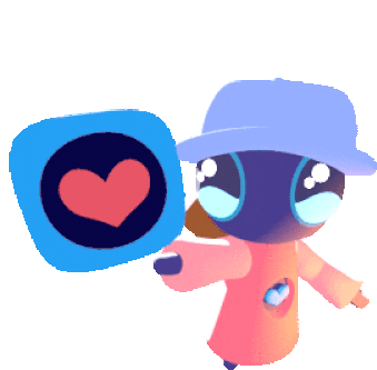 Izzi, the cute Art Club character from Clubheart, waves a paddle-like object, perfect for Discord reactions.