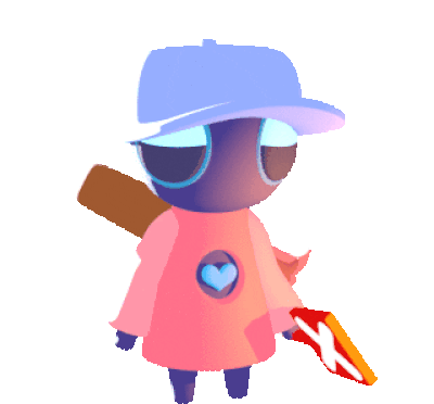 A cute cartoon character from Art Club, wearing a blue hat and pink coat, holds a red 'X' sign, expressing disagreement or disapproval.
