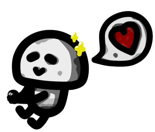A cute, stylized skeleton character with sparkling stars, holding a small creature, and a speech bubble with a red heart.