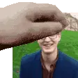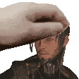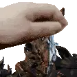 Pixel art sticker of Arthur Nightingale from Warframe, showing his head with a comforting hand petting him.
