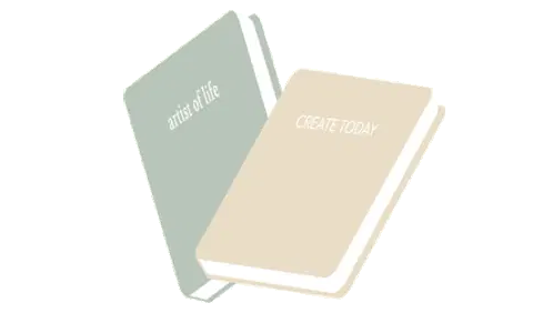 Two aesthetic notebooks, 'Artist Of Life' and 'CREATE TODAY', symbolizing creativity and daily inspiration.