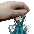 Arturo Giles's cartoon character head being gently patted. A hand is shown petting the masked character.