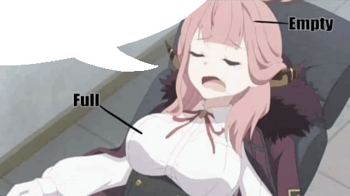 a cartoon of a girl with a speech bubble that says " full "