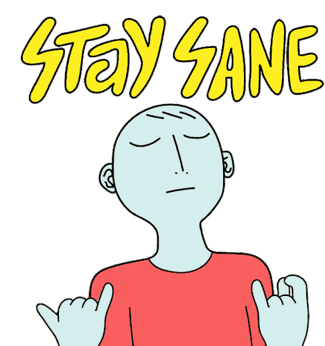 An animated sticker featuring a character taking a deep breath with the text 'STAY SANE' above, promoting calm and peace.