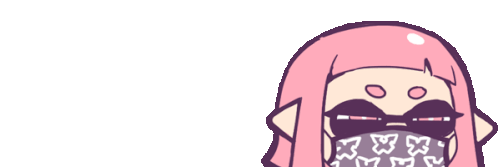 Animated Splatoon2 character with pink hair and mask, skillfully spinning a knife. A cool assassin vibe.