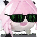Astolfo Plush, from Fate/Grand Order, wears Matrix-style sunglasses while bouncing, ready to hack.