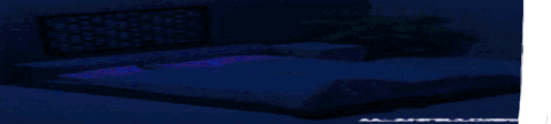a computer generated image of a person laying on a bed with a purple light shining on them