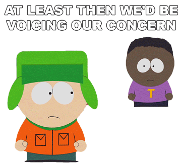 Kyle Broflovski and Tolkien Black from South Park express concern, emphasizing the importance of voicing opinions.