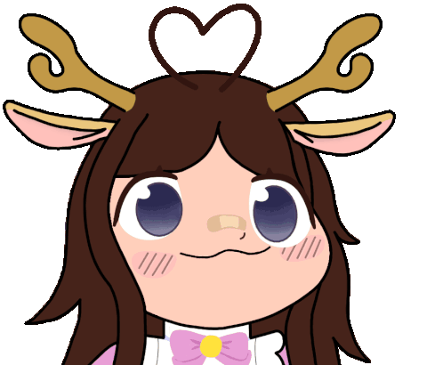 Athena Bambina, a cute cartoon girl with deer antlers and a heart, winks playfully in this animated sticker.