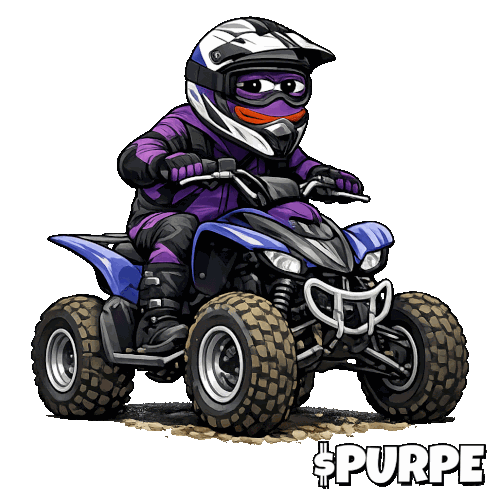 a cartoon drawing of a person riding a four wheeler with the word purpe on the bottom
