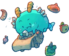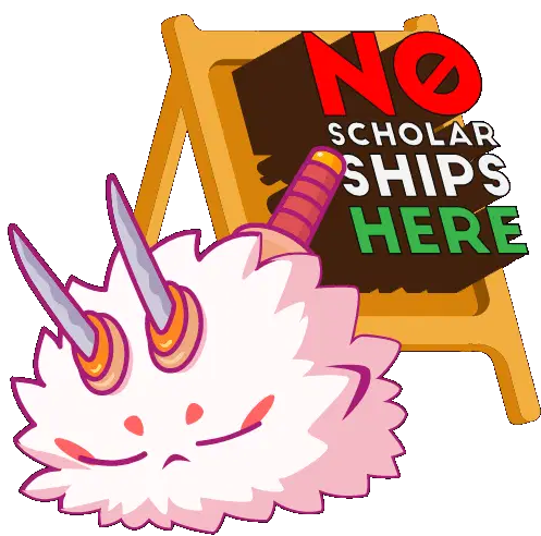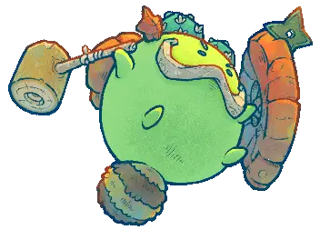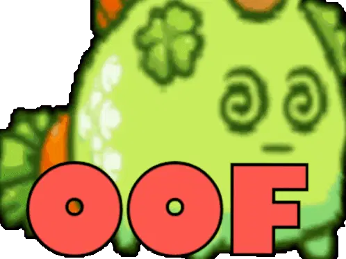 An Axie Infinity character, an Axie, is caught in a choke hold, looking surprised and distressed.