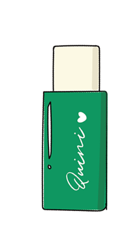 Animated sticker featuring a green Axis Y Quini skincare bottle with a heart, perfect for beauty and self-care themes.