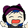 a cartoon of a person wearing headphones and a purple hat with cat ears .