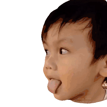 A cute baby boy with dark hair playfully sticks out his tongue, looking to the side with a mischievous expression.