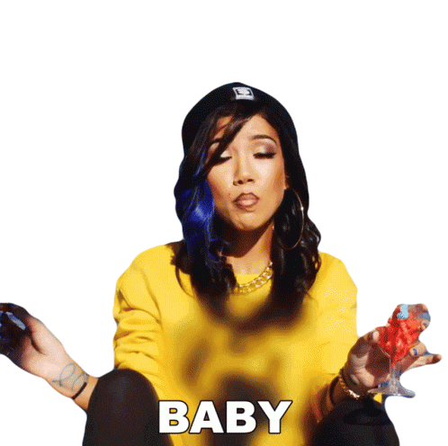 Jhene Aiko, wearing a yellow sweatshirt and black cap, sings or speaks the word "BABY" while holding two drinks.