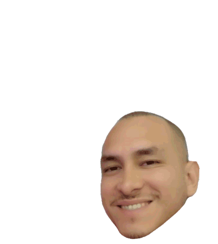 Animated sticker featuring Bachas Sam's smiling head, looking around with a cheerful expression.