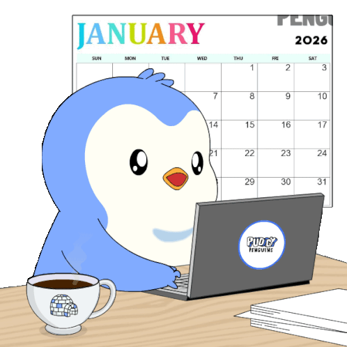 a penguin holding a sign that says back to work in front of a calendar