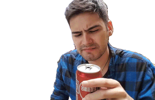 Fabio Torres looks displeased and frowns while holding a red can, expressing a 'bad not good' sentiment.