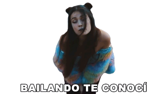 Shainny dances energetically in a colorful blue jacket with the caption 'Bailando Te Conocí' (Dancing I Met You).