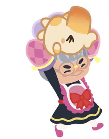 Bakenswitch Rosemary, the Doughdough Bird Granny, joyfully walks and smiles in this cute animated sticker.