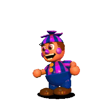 a cartoon character is wearing a purple and blue hat and blue pants .