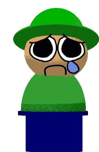 Bambi Fnf Bandu, the pixelated character, sits at a table, smiling and playing a colorful xylophone with mallets.