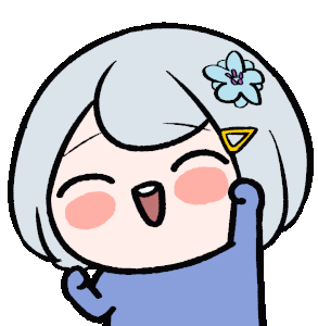 Ban Hada, a cheerful chibi girl, raises her hand in a cute, excited gesture, expressing joy and happiness.