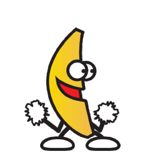 A cheerful animated banana character with pom-poms dances energetically, bringing a fun and playful vibe.