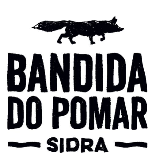 a black and white sign with a fox and the words bandida do pomar sidra