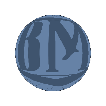 An animated blue sphere with the letters "BM" (Bane Murrain) in the center, spinning continuously.