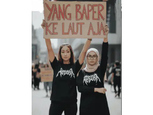 Animated sticker of the character Juki with the Indonesian word 'BAPERAN' (easily emotional) above his head.