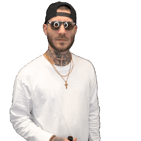 a man wearing sunglasses and a hat is holding a bottle of beer with a label that says lief