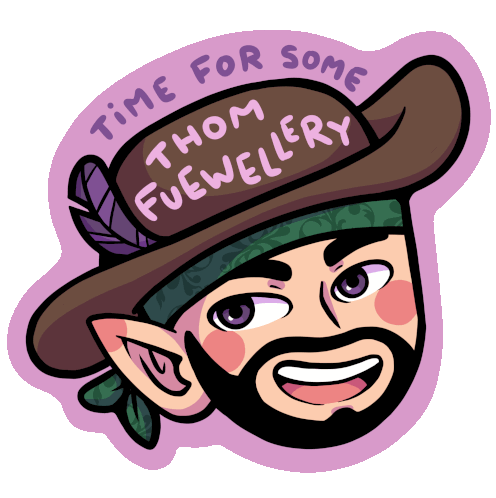 a cartoon drawing of a man wearing a hat that says time for some thom fuewellery