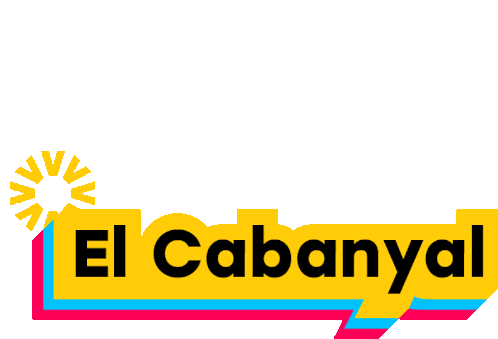 Animated logo for El Cabanyal, a vibrant neighborhood in Valencia, featuring yellow, pink, and blue text with a sun icon.