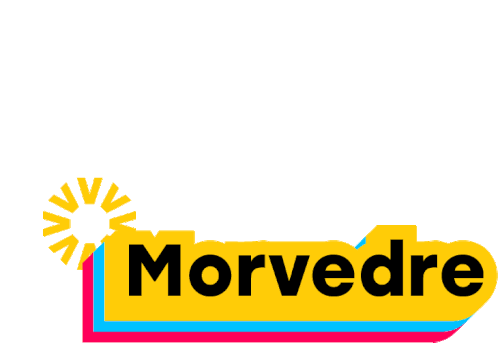 Vibrant sticker featuring 'Morvedre', a barrio of Valencia, with a sun graphic, celebrating local identity.